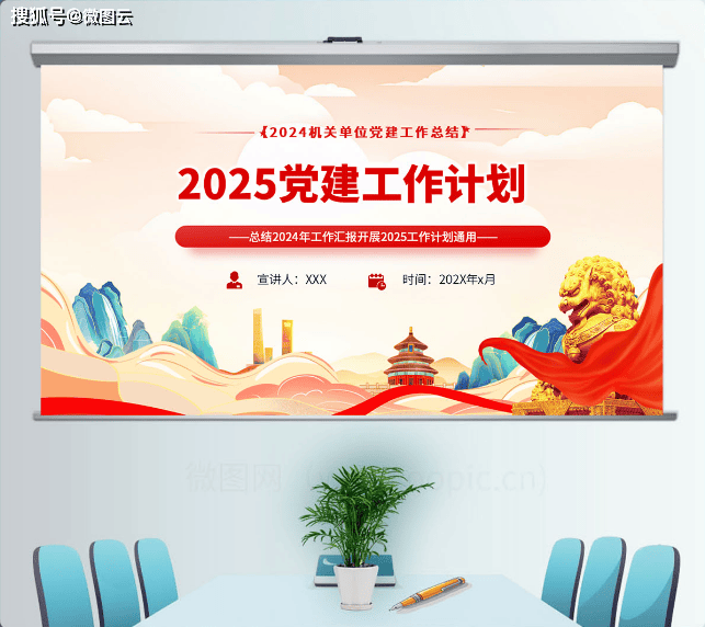 党的扶植取营业工做应充实连系,彼此推进,才能实现配合成长,机关党建取营业工做脱节、彼此割裂的环境仍然存正在。 今天天跟大师分享的课件从题是:2024年机关党建工做总结和2025年工做打算通用PPT模板含26页PPT 课程次要以红色气概制做,系统、全力书写以高质量党建引领高质量成长的优良答卷。 课程次要分为:三个从题来引见:1。2024年党建工做开展环境2。存正在的次要问题3。2025年党建工做打算。